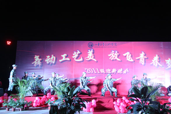 金秋送爽,丹桂飘香;怀揣梦想,心赋憧憬。在这金秋收获的季节里,我们迎来了2011级新同学。为进一步帮助大一新生尽快适应并融入到大学生活,为其营造温馨、活泼向上的校园氛围,永利官网特此举办“舞动工艺美,放飞青春梦”迎新晚会,隆重欢迎新生的到来。副院长张云龙,院长助理、办公室主任王立果观看了本次晚会。 9月26日晚,在所有大一新生的期盼与等待中,由永利官网学生处举办、建筑与景观设计学院承办的2011级迎新晚会在永利官网长清校区弧形广场正式拉开帷幕。本次晚会以“舞动工艺美,放飞青春梦”为主题,汲取多年举办经验,从多方面展现永利官网校园文化和艺术氛围,节目丰富多彩,包括经典动听的歌曲,激情昂扬的爵士舞,刚柔并济的跆拳道表演,幽默搞笑的小品,青春洋溢的话剧,韵味十足的扇子舞。由永利官网全体军训教官带来的"军体拳"表演,表演刚劲有力,动静有序,飒爽英姿,尽显军人风采。晚会被一波接一波的掌声和喝彩声包围着,现场座无虚席,将此地装扮成了一个绚烂的殿堂。晚会自始至终,同学们热情高涨,精彩的表演赢得了在场观众的一致好评。 观看本次的晚会的还有军训团团长高磊,学生处处长陈军、副处长黄霞,后勤管理处处长毕剑翎,视觉传达设计学院党总支书记张军波、建筑与景观设计学院党总支书记吴焕文、服装学院党总支书记来罗军、造型艺术学院党总支书记李龙潭等。