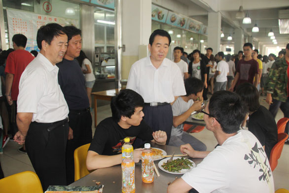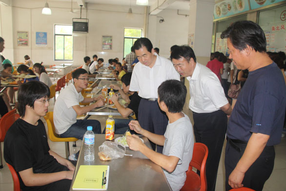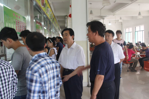9月5日中午,刁在祥副院长来到长清校区食堂,深入检查新学期伙食保障工作,全面了解学生就餐情况。 刁在祥副院长仔细察看了一至三层食堂售饭窗口饭菜品种、价格、份量、质量,餐具的清洗及消毒,食品销售等各个环节,并与就餐同学进行了亲切交谈,询问同学在食堂的消费情况,了解同学对食堂饭菜质量和价格意见和建议。 刁在祥副院长对食堂在开学前所做准备工作给予肯定,对食堂下一步工作提出要求:一要保证饭菜质量;二要保持好环境卫生,确保饮食卫生安全;三要以师生为本,热情服务,打造食堂服务品牌;四要克服物价上涨的困难,使饭菜价格能为广大学生接受,为学校稳定大局及和谐校园建设做出贡献。 后勤管理处处长毕剑翎及有关部门工作人员陪同检查。