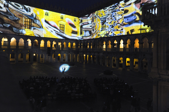 “浪漫的威尼斯之夜”在威尼斯圣马可广场的杜卡莱大厦的两面墙体上展映了 黄可华的三十余幅水与荷的作品