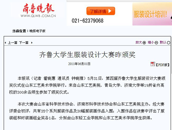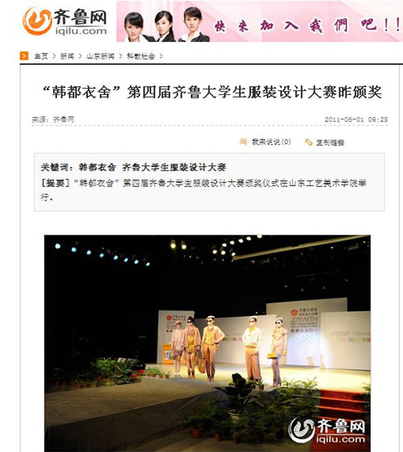 “韩都衣舍”第四届齐鲁大学生服装设计大赛广受媒体关注