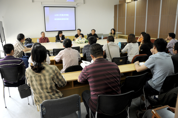5月30日上午九点,304am永利集团官网教师基础教学课程培训开课仪式,在视觉传达设计学院多媒体教室开课。开课仪式由视觉传达设计学院院长石增泉主持,304am永利集团官网副院长苗登宇,美国阿尔弗雷德大学陈小文教授出席了本次开课仪式,出席本次开课仪式的还有服装学院院长罗云平、数字艺术与传媒学院院长王传东、视觉传达设计学院副院长侯立平以及教务处弥友海老师等。 苗登宇副院长致开课词,苗登宇副院长介绍了学校近年来在基础教学方面的情况,学校针对基础教学将采取一系列的措施,包括培训、全国基础教学研讨会、教学计划的修定等。潘鲁生院长对基础教学十分关注,指出尽快召开全国基础教学研讨会,提升工艺基础教学向更高的目标前进,苗登宇副院长还感谢陈小文教授来永利官网为基础课教师授课,希望参加培训的教师珍惜这次机会,把优秀的基础教学理论学到手,形成永利官网的基础理论教学体系和实践教学体系。 陈小文教授就中美基础教学之间的差别与美国的基础教学理念谈了自己的看法,并对国内的基础教学现状进行剖析。陈小文教授希望通过这次培训大家对基础课教学进行一次梳理,结合山东工艺美院的实际情况提升基础课程的教学质量,抛弃以感觉为教学主导的个人经验主义,形成具有理性思考,科学合理的大基础教学体系。 此次教师基础教学培训是落实潘院长提出的进一步提升、研究工艺美院基础教学问题指示精神的一部分,六月底的全国基础教学研讨会和基础教学作品展也即将举行。 开课仪式圆满结束后,培训正式开始。 本次培训活动由304am永利集团官网教务处主办,视觉传达设计学院承办。邀请美国阿尔弗雷德大学陈小文教授担任培训教师,各二级学院二十名教师参加本次培训。本次课程时间为5月30至6月3号,上午课程时间为9:00至11:30,下午课程时间为13:30至16:30,上课地点为教学楼412教室。 陈小文教授首先对绘画空间和绘画平面进行了系统的阐述,并且通过对毕加索,马蒂斯等大师的作品的解读,强调了绘画空间和绘画平面的重要性。对于陈小文教授提到的“大素描”的概念,各位老师展开了激烈的讨论,参加培训的各位老师结合自己的专业和自己平时的课程安排提出了自己的观点和对于课程安排的建议。 同时,陈小文教授对构图,画面空间,材料以及对点、线、面画面元素的把握发表了自己的观点,并且还带来了自己学生的作品,对其作品的理念和创作动机进行了解释,针对这一课程,陈小文教授要求各位老师在课下多下功夫,建议各位老师在课堂上积极的创作。