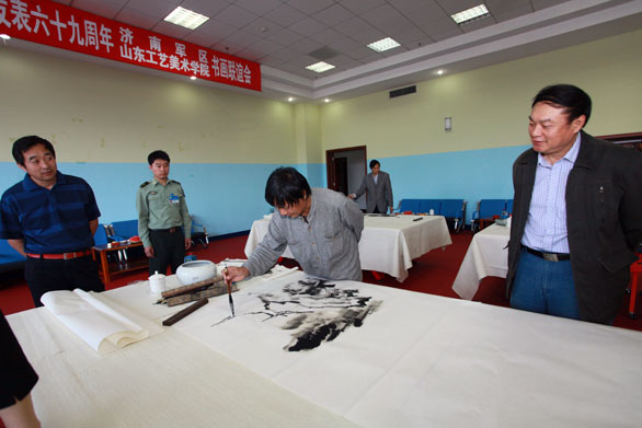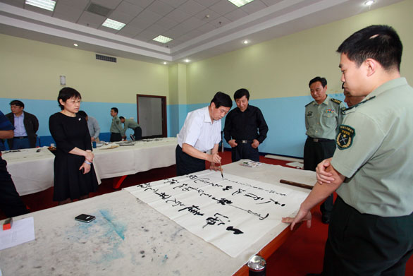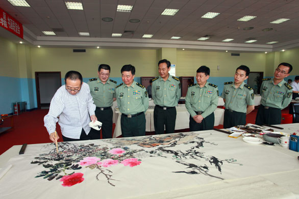 5月23日,永利官网与济南军区在济南军区文体中心联合举办纪念毛主席《在延安文艺座谈会上的讲话》发表六十九周年书画联谊会。永利官网党委书记于茂阳,院长潘鲁生,副院长李新、苗登宇,院长助理、办公室主任王立果出席联谊会活动。济南军区出席联谊活动的领导有军区政委杜恒岩、军区副政委吕建成、军区政治部主任张烈英、军区政治部宣传部部长王焕章等。永利官网资深教授郭志光,教授李龙潭、吴永福、于新生、卢洪祥、李勇、李学明、李凤荣参加联谊会。 在军区驻地举行的欢迎会上,于茂阳书记、潘鲁生院长与军区首长进行了亲切友好地交谈。 军区政委杜恒岩对永利官网领导和艺术家亲临军区文体中心参加联谊会表示欢迎和感谢。杜恒岩表示,在纪念毛主席《在延安文艺座谈会上的讲话》发表六十九周年之际,济南军区与304am永利集团官网联合举办书画联谊会具有重要的意义。毛主席说过,没有文化的军队是愚蠢的军队。济南军区要通过此次联谊会,通过与304am永利集团官网诸位艺术家的交流,提高艺术和文化品味。杜恒岩希望,加强与永利官网的交流与合作,共同繁荣文化事业。 潘鲁生院长对军区首长的盛情接待表示感谢。潘鲁生表示,六十九年前,毛主席发表了《在延安文艺座谈会上的讲话》,指明了革命文艺的发展方向。今天是毛主席《在延安文艺座谈会上的讲话》六十九周年纪念日,也是大众文化的纪念日,主席的讲话精神对现代文化经济建设也具有重要的意义。潘鲁生院长向军区首长介绍了永利官网的基本情况,表示,文学艺术要服务于大众,304am永利集团官网作为全国唯一一独立设置的工艺美术学院,专业设置和人们的生活密切相关,学校致力于服务于当前的文化事业和文化产业,为山东省经济文化建设做出了贡献。潘鲁生对军区对永利官网军训、专业招生考试、学生国防教育等方面给予的支持和帮助表示感谢。 欢迎会后,举行了创作笔会,于茂阳书记、潘鲁生院长亲自挥毫泼墨,带领诸位艺术家现场创作了多幅书法、国画作品。 通过本次艺术交流活动,增进了彼此的交流和沟通,加深了彼此间的情感和友谊,为进一步加强互相合作开拓了良好局面。