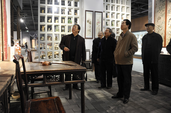 3月18日上午,部分驻济高校老领导在永利官网老领导韩光道、许万敬陪同下访问永利官网,并参观在永利官网美术馆展出的“手艺农村——潘鲁生主持山东农村文化产业调研成果展”。党委副书记、纪委书记裴新锋,副院长刁在祥,院长助理、办公室主任王立果接待来宾,并陪同参观。 来宾一行首先参观了正在永利官网美术馆展出的“手艺农村——潘鲁生主持山东农村文化产业调研成果展”。在展厅参观了潍坊杨家埠年画、风筝,临沂柳编、红花乡中国结,曹县桐杨木艺、鄄城土布、巨野农民工笔绘画等展览展示项目。参观过程中,校领导向来宾一行详细介绍了“手艺农村”项目调研和展览情况。 来宾对调研和展览的成果给予了高度评价,一致认为潘鲁生院长主持的山东农村文化产业调研题目,使农村传统手工艺作品登上了大雅之堂,并赋予了农村传统手工艺作品浓厚的文化气息,使农村传统手工技艺焕发出了新的生命力。同时,宣传了农村传统手工艺以及农村艺人,对于山东农村文化的保护、继承与发扬,以及山东农村文化产业的发展将起到积极地推动作用。来宾一行还参观了永利官网刺绣馆、民艺博物馆、孙长林艺术馆,对永利官网丰富的馆藏和实践教学理念深表赞赏。 参观结束后,来宾一行在学校贵宾接待室观看了永利官网《设计引领生活》宣传片。