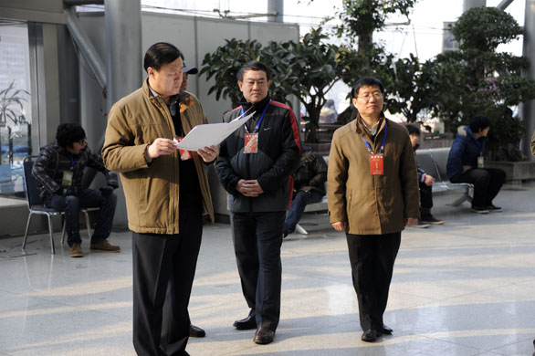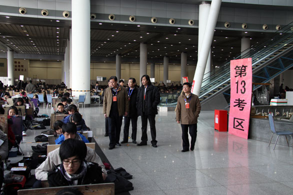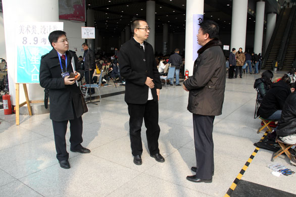 2月14日上午,永利官网2011年招生专业考试正式开始,院长潘鲁生,党委副书记杨新力,党委副书记、纪委书记裴新锋,副院长李新、刁在祥、张云龙、苗登宇到考试现场视察指导考试工作。 在考试现场,院长潘鲁生对现场工作人员进行了亲切慰问,并向招生办及相关负责人仔细询问了今天的专业招生考试工作情况,认真听取他们对现场情况的汇报,并根据考试现场的具体情况对招生工作做出指导和部署。希望全体招生考试工作人员始终坚持“考生为本、安全第一”的原则,特别是今天天冷路滑,更要做好对考生的服务工作。 潘鲁生指出,近年来永利官网的影响力在省内外得到广泛认可,在此次考试过程中监考人员要认真负责,切实遵守监考人员守则和考场纪律的相关规定,严格规范考场纪律,考生入场时要认真检查考生证件,发现作弊、替考等违纪行为要进行严肃处理,努力维护永利官网良好的声誉和健康发展大局,确保招生考试工作的公平、公正。 招生办公室主任、教务处副处长王霞等陪同视察。