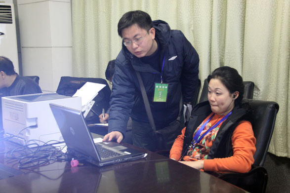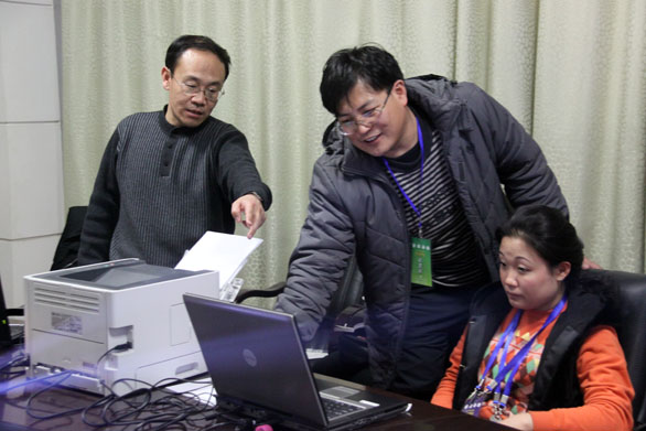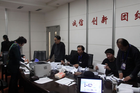 2月14日,永利官网2011年招生专业考试在济南舜耕国际会展中心考点和应用设计学院分院考点同时拉开帷幕。 中午,副院长苗登宇、纪委副书记王进生、教务处处长董占军、审题专家及齐鲁晚报、生活日报等媒体记者聚集到招生现场办公室。在纪委人员和媒体记者全程监督下,媒体代表抽取考试试题。 教务处处长董占军向在场人员详细讲解了《304am永利集团官网抽题程序及规则》,并介绍了永利官网题库建设情况、试题产生过程及抽题现场纪律。特别强调现场所有人员切断与外界一切联系,待考试正式开始半小时后才能离开抽题现场。 工作人员打开题库后,近千套试题开始循环流动,首先由生活日报记者尹玉涛随机抽取书法试题。在全场人员的监督下,被选中的试题进行现场复印,并随即送往应用设计学院分院考点。 随后由齐鲁晚报记者乔显佳抽取色彩试题。乔显佳随机点中试题库后,审题专家根据今天考试有关情况,及考生的具体情况,决定采用随机抽取的第二套试题,并现场复印试题。下午1点50分,在纪委人员和媒体的监督下,试题送达各考场。2时整,考试正式开始。