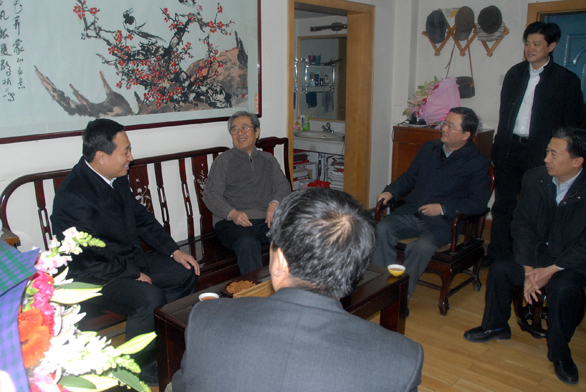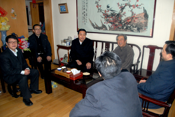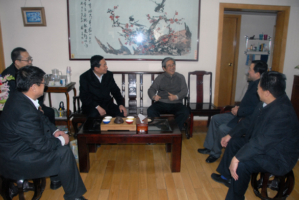 在兔年新春临近之际,1月20日上午,省委常委、宣传部长孙守刚来到永利官网退休教师、著名画家郭志光教授家中走访慰问。省委宣传部副部长刘为民,省文联主席、永利官网院长潘鲁生,省文联党组书记于钦彦,省委宣传部副巡视员聂洪刚等陪同。 孙守刚转达了省委、省政府向郭志光教授的节日问候和良好祝愿,并与郭教授亲切交谈,祝福他健康长寿,永葆艺术活力。他还详细询问了郭志光教授的身体和生活情况,对他多年来为我省艺术事业繁荣发展作出的贡献给予高度评价。 孙守刚讲到,在推动我省文化大发展大繁荣、加快经济文化强省建设的过程中,非常需要老艺术家的意见和建议。期望郭志光教授继续发挥“传、帮、带”作用,积极培养人才,为传承中华文化、繁荣艺术创作作出新的贡献。 潘鲁生院长代表学校对郭志光教授致以节日的问候与祝福。他说,老教授是学校的宝贵财富,为学校建设和发展做出了巨大的贡献。今后,学校将继续为他们服好务,为老同志安享晚年提供保障。 郭志光教授对省领导的关心表示感谢。他认为,学校现任领导班子年轻有为、治校科学,学校各项事业取得了长足发展。学校党委和行政非常关心离退休老教授的晚年生活,解决了很多实际问题。老教授们离职不离心,时刻关注学校的发展,也愿意为我省的文化教育事业贡献余热。郭志光教授即兴作画对省领导和校领导表达了新年祝福。 党委组织部正处级组织员杨雪梅、党委宣传部部长张振羽、离退休工作处处长陈连顺陪同走访慰问。