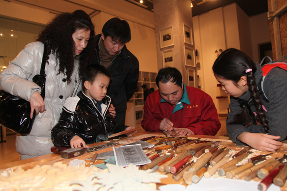 1月15日,恰逢周末,“手艺农村”成果展迎来各界参观群众。有的举家前来,有的与朋友结伴参观,还有大批孩子在老师和家长的带领下前来参观并现场写生。据了解,大多数参观者专程赶来,因为通过中央及北京各大媒体了解到展览盛况,有的也从朋友那儿得到关于展览的介绍,人们纷纷表示,不仅因为具有对传统手艺的浓厚兴趣,通过这个展览也能体验到山东的风土人情,感受到传统手艺的生命力和时尚气息。