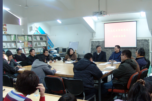 12月29日下午,人文艺术学院党总支在四楼多媒体教室召开党总支组织生活会,党委副书记、纪委书记裴新锋出席会议并做点评。 人文艺术学院党总支书记王妍首先对学院“创先争优”活动的开展情况进行总结,并对教工党支部和学生党支部开展“创先争优”活动实施情况进行点评。随后,教工党支部书记姬升果和学生党支部组织委员杨端举先后发言,对一年来的工作实施情况进行汇报,并提出了下一步工作计划和整改措施。 裴新锋副书记作重要讲话并对人文艺术学院“创先争优”活动进行点评。裴新锋副书记对人文艺术学院的工作给予了充分肯定,认为人文艺术学院工作扎实、活动丰富、结合实际,取得了明显效果。人文艺术学院继承了工艺美院的优良传统,扎扎勤恳的做了大量工作:一是党总支领导班子带头抓得紧,通过领导带头,积极组织参与,起到非常好的示范作用;二是人文艺术学院不仅教工党员积极参与,而且充分带动起党外人士和群众的活动热情,体现出党内党外和谐相处,共同奋进的良好局面;三是学生党员在”创先争优”活动中通过学风建设、业余团校、代理班主任和公益活动等方式,将活动切实与学习生活相结合。