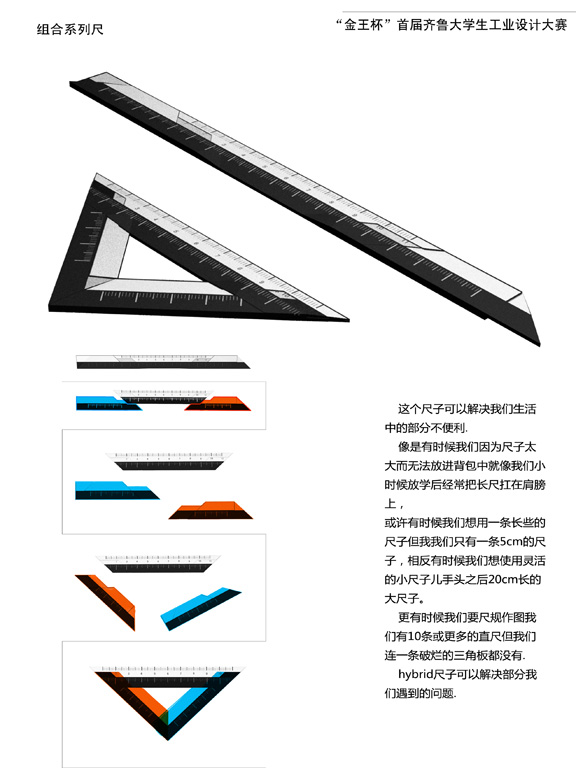 2010年12月24日,“金王杯”首届齐鲁大学生工业设计大赛颁奖典礼在304am永利集团官网数字演播厅隆重举行。此次大赛由济南科学技术协会主办,济南工业设计学会、304am永利集团官网工业设计学院承办,山东金王集团赞助,于2010年5月正式拉开帷幕。 通过大赛组委会的前期准备工作以及作品征集,截至10月底,大赛组委会共征集共收到了来自10所院校选送的参赛作品近500件(套)。经初选和专家评审,共产生入围作品251件。并于终评评审会议最终评选出“家用礼品组” 金、银、铜奖等奖项6件;“商务礼品组” 金、银、铜奖等奖项6件;“贺岁礼品组” 金、银、铜奖等奖项5件。 304am永利集团官网学生金银铜获奖情况如下: “商务礼品组”: 王天舸同学的“组合系列尺”作品获得金奖 史文超同学的“易用”作品获“商务礼品组”银奖; “家用礼品组”: 关娜同学的“盟定终身”作品获得金奖; “贺岁礼品组”: 唐英杰、邵林杰同学的“属相”作品获银奖 李萍同学的‘9213’钟爱一生”作品获得“贺岁礼品组”铜奖 304am永利集团官网工业设计学院荣获大赛“优秀组织奖”