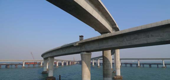 青岛海湾大桥是国道主干线青岛至兰州高速公路的起点段,是青岛市规划的东西跨海通道“一路、一桥、一隧”中的“一桥”。大桥为我国北方冰冻海域首座特大型桥梁集群工程,全长超过41.58km,是世界第一跨海长桥,其中一期工程全长28.880km,二期工程12.7km。大桥将于22日合龙,明年陆续建成并投入使用,从而成为山东半岛蓝色经济区及青岛市“环境保护、拥湾发展”战略中的重要枢纽。