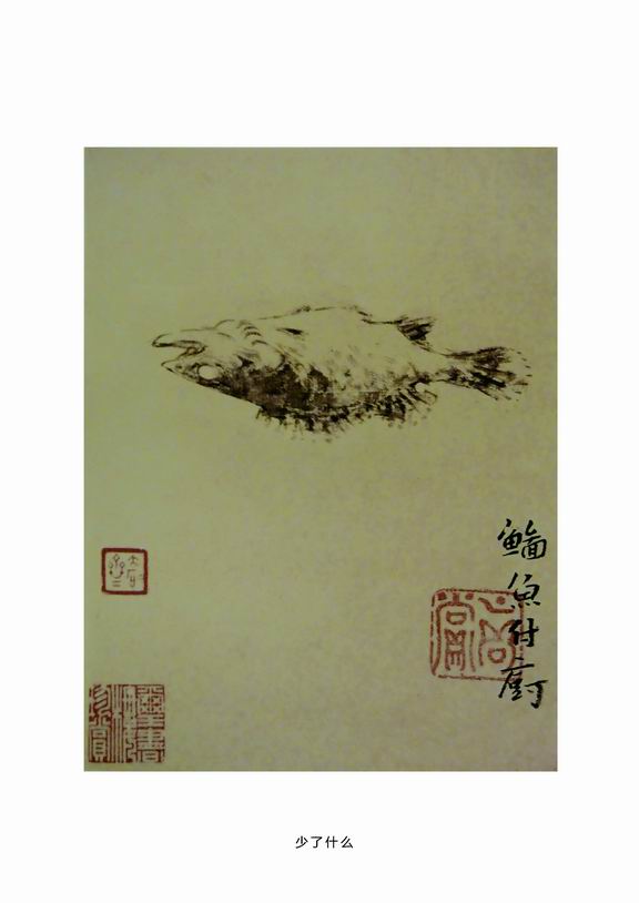 王小龙同学作品《画之殇》用两幅被“篡改”的国画,提醒人们对环境污染的关注;以一个改编版的传统游戏“华容道”,警示人们务必注意交通安全;涂抹出简单几笔儿童画,勾勒出一颗颗纯净无暇的少年爱心。传统国画中幽静的意境被喧闹扰乱,墨色的鱼“肚朝天”地横亘在画面中央,传统文化元素在这里体现出了别样的意味,拷问着人们的环保意识和内心良知。