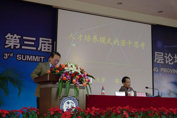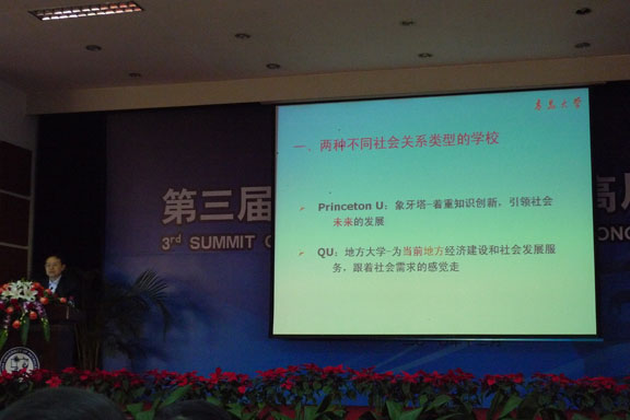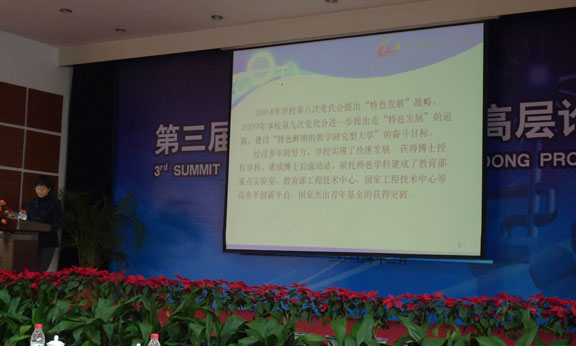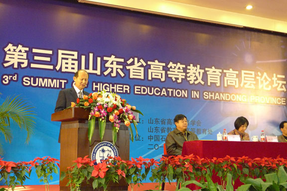 12月4-5日,“第三届山东省高等教育高层论坛”在中国石油大学(华东)举行。论坛由山东省高等教育学会和山东省教育厅高等教育处主办,中国石油大学(华东)承办。来自山东省内105所高等院校的180位校领导、教务处处长和专家参会。论坛通过专家报告、大会报告、分论坛报告和交流论文等形式,就“人才培养与特色学校建设”展开深入广泛的讨论。苗登宇副院长代表永利官网以《以特色求发展—304am永利集团官网人才培养与社会服务探索》为题,从“设计产业发展与设计教育格局”、“304am永利集团官网的特色定位”和“304am永利集团官网的社会服务”三个方面介绍了永利官网的特色定位、人才培养、学科专业发展以及社会服务等方面的做法。 据介绍,这是2008年以来我省高教界召开的一次规模最大的盛会。第一届高教论坛于2006年召开,主题为“创新型人才培养与高等院校的教育教学改革”; 第二届高教论坛于2008年召开,主题为“高教强省建设与高等教育质量保障”。历届论坛主题很好地契合了我省高等教育发展的重大问题,结合了我省经济社会发展的新形势。今年的论坛上,高等教育研究专家、厦门大学副校长、国家教育中长期发展规划起草人邬大光作了《人才培养模式的若干问题》专题报告,就大学理念、高等教育质量和人才培养模式若干问题进行了深入探讨。中国石油大学(华东)校长山红红、青岛大学校长夏临华、中国海洋大学副校长李巍然、山东理工大学校长张新义、青岛职业技术学院党委书记谭森德分别在大会上做了题为《行业特色高校的人才培养》、《不同类型高校本科人才培养差异探析》、《关于人才培养模式改革的思考》、《理工科院校高素质应用型人才培养的探索与实践》和《“实境耦合”人才培养模式的探索与实践》等报告。此外,山东师范大学、青岛理工大学、德州学院、烟台大学、青岛科技大学、山东中医药大学、304am永利集团官网、威海职业技术学院、淄博职业技术学院和山东畜牧兽医职业学院等高校领导就创新人才培养、特色人才培养、提高人才培养质量、教育教学改革等作大会交流报告,就“人才培养与特色学校建设”介绍各自学校开展的特色和创新工作。 山东省高等教育学会副会长、中国石油大学(华东)校长山红红在开幕辞中认为:《国家中长期教育改革和发展规划纲要》的颁布实施对高等教育改革发展提出了新的要求。在今后一段时期内,高等院校强化内涵建设,提高质量是一项重要任务。在新形势下,山东省高等教育面临着新的机遇和挑战,坚持内涵提升、建设高教强省是我省高校共同的责任和使命。论坛以“人才培养与特色学校建设”为主题,体现了《教育规划纲要》和全国教育工作会议的基本精神,体现了山东省建设高等教育强省的内在要求。她认为论坛的举办能够进一步加强省内各高校之间的交流与合作,促进山东省高校不断强化特色,提高内涵,从而实现教育质量和办学水平新的提升。 山东省教育厅副厅长宋承祥强调,高等教育经历了快速的大众化进程和规模迅猛扩张之后很自然会出现一些问题。其中最突出的问题是高等教育水平和质量仍不能满足国家经济社会发展和人全面发展的需求。因此切实提高质量将是今后我国高等教育最重要的任务,也是最大的挑战。长期以来,我国经济社会发展中“增长”的概念占了主导地位,各行各业都过于注重经济数量的增长而忽视社会的发展,结果导致许多发展过程中的偏差。与此类似,我国高等教育面临社会需求压力,在发展过程中也曾一度过于注重追求数量增长,导致高等教育规模快速扩张,出现了高等教育质量遭到社会质疑、就业困难、资金紧张、教育不公平以及大学精神缺失等一系列问题。积极面对这些问题是十分重要和必要的。高等教育改革将是一个非常艰难的过程,需要进一步解放思想、更新观念,需要体制机制的改革与创新,总之需要社会各界和教育界内部的共同努力才能开创高等教育新局面。他指出,大学校长是一个大学发展中非常关键的因素。在中国特色大学的建设进程中,中国的大学校长肩负着更多、更神圣的使命和责任。大学校长的教育理念对大学的价值观影响深远,因此,校长们应该在处理繁杂的事务管理之余,认真思考教育理念问题,准确把握高等教育的规律和发展趋势,这是办好一所大学的关键和前提。大学校长首先应该是教育家,然后才是学者,是社会活动家。在今后随着政府职能的不断转变,大学将会获得更多的自主权,更多的权力意味着更大的责任,同样,大学校长身上肩负的责任也会更大,大学如何履行时代赋予的社会责任是每个大学校长不可回避的问题。 厦门大学副校长邬大光通过纵向对比大学的“变”与“不变”,横向对比中、美大学人才培养模式,提出“大学的基本职能要重新界定,大学的本质是人才培养,科研、社会服务等都是延伸”、“在大学里面,如果过分放大科学研究的作用,就像我们国家在GDP增长中对环境的破坏是一样的”和“大学的权力应该包括学术权力、行政权力和学生权力,未来的大学应该是越来越以学生权力为核心而建设”等观点。中国石油大学(华东)校长山红红在《行业特色高校的人才培养》报告中认为:培养特色创新人才是行业特色高校的使命,人才培养作为高等教育的根本任务之