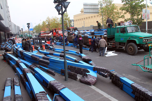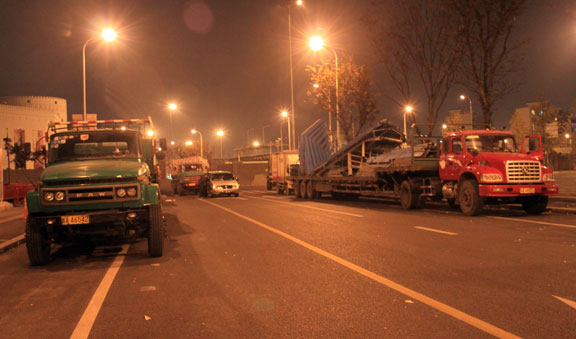 11月18日8时,最后一批装载山东馆物资的十六辆卡车从上海世博园起运,上海世博会山东馆撤展回迁上海撤展现场工作顺利、圆满完成。