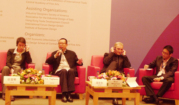 院长与一同担任本届论坛演讲嘉宾的美国工业设计师协会执行董事Clive Roux,意大利工业设计协会会长Luisa Bocchietto,香港设计师协会主席施加礼,德国iF国际设计论坛总裁Ralph Wiegmann,米兰理工大学设计学院教授Lia Tagliavini,新加坡Consulus集团公司大中华区总监黄庆丰等进行了交流,回答观众提问。演讲面向设计推广与交流领域,对教育问题做出深入剖析,激起共鸣并引起了各国专家的讨论,产生积极反响。