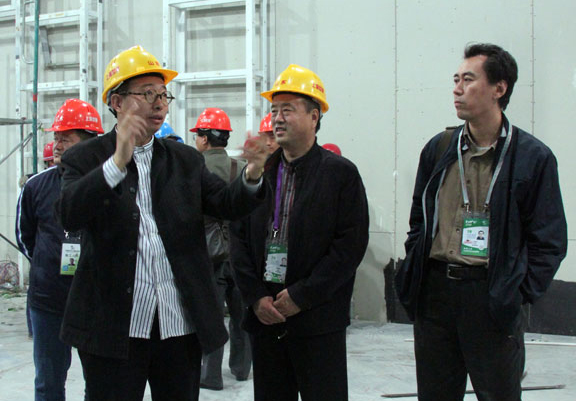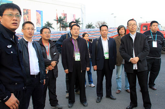 前来上海世博会山东馆撤展回迁现场检查指导。山东馆撤展工作现场指挥毕剑翎及撤展团队成员陪同。
