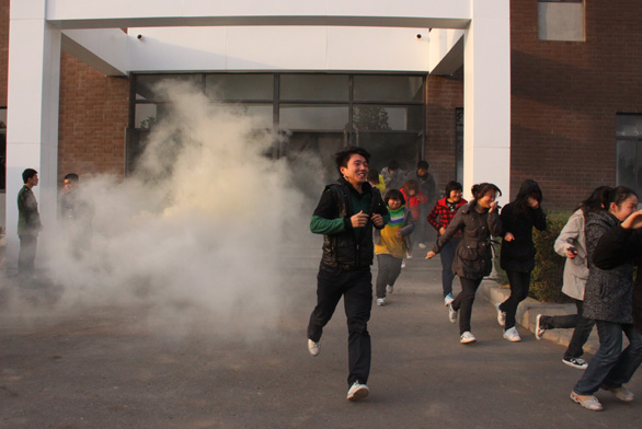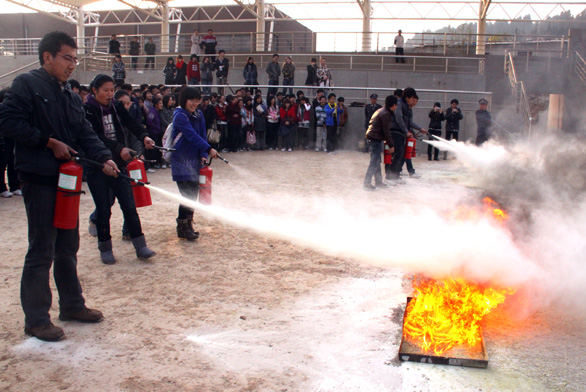 11月10日下午,保卫处和视觉传达设计学院在长清校区举办了消防安全知识专题讲座暨防火逃生演练。视觉传达设计学院2010级学生参加了本次活动。在第四合堂教室,长清区消防大队韩广西工程师为同学们做了打造“四个能力”建设,构筑平安和谐校园消防安全知识专题讲座。韩广西工程师结合实际,图文并茂,以大量的事例为证,就火灾的定义、发生条件、类型,消防工作的“四个能力建设”,预防火灾的注意事项,防火逃生的基本技能,灭火器的使用方法向同学们进行了讲解。 随后,在操场上组织同学们对干粉灭火器灭火进行了实际的操作演习,并在学校食堂进行了防火逃生实地演练。 本次活动圆满成功,达到了预期目的。通过本次活动普及了同学们的消防安全知识,提高了同学们的消防安全意识,增强了同学们的火场逃生自救能力。为在全校创造一个消防安全人人有责的氛围,保障广大师生的生命和财产安全,打造平安和谐校园起到了示范作用。 保卫处全体工作人员、部分保安、物业人员及各二级学院辅导员代表也参加了此次活动。