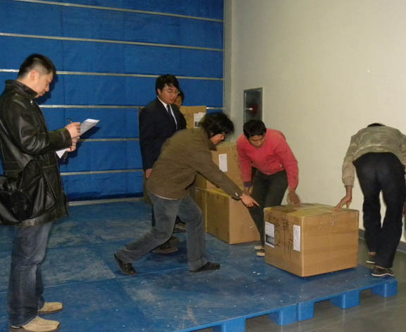 “夜路比较顺,比预计的时间提早到了。”负责运送的工作人员说。8日上午9点多,山东馆的第一批物资就到达了济南园博园会展中心。在会展中心4号展厅的门口,数十位工作人员正在忙着把车上的物品小心翼翼地卸下来,相关的工作人员在旁边仔细对照着入库清单。在现场负责物品验收的山东工艺美院副教授李海涛认真查看着每个环节。“今天这些基本都是放在A区的,就是展厅的最里面。第一批物品为山东馆内的展品展项。这些LED等电子设备,都是需要防潮的,所以放在最里面,还准备了雨布等防潮的设施。物品的存放有两个原则:一个是跟搭建的顺序要相反,例如这些展品展项最后才用到就可以放在最里面,而搭建之处就用的地台就要尽量放在门口;此外,重的、不易挪动的东西尽可能的放在门口附近。 ”