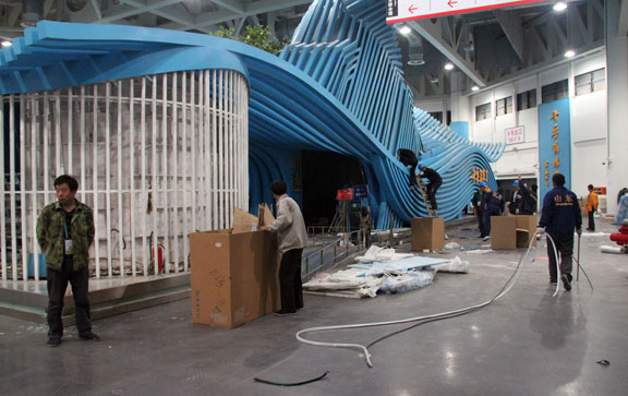 11月7日,世博会山东馆展品、展项及附件设施的拆解、包装、装车工作顺利完成,16:20分,第一批展品展项等物资从世博园起运济南,这标志着山东馆回迁重建第一阶段工作顺利完成。11月7日起,山东馆回迁重建工作将进入馆体拆除阶段。山东馆撤展工作总指挥、304am永利集团官网副院长苗登宇,山东馆撤展工作现场指挥毕剑翎在现场指挥物资车装及起运。