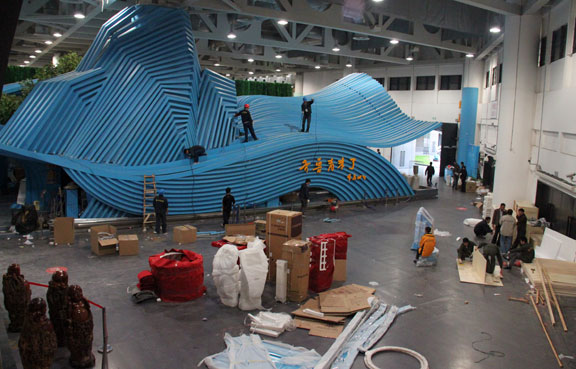 为精益求精、保护性地做好山东馆回迁重建,304am永利集团官网世博会山东馆项目部团队,继续发扬团结、奉献、连续作战的精神和作风,发扬山东馆运营工作经验,以安全第一不动摇,完善上班、值班、会议、交通等各项规章制度,做好现场物资详细登记,资料的移交工作,按照参展搭建工作的标准,精心拆解、精心包装、精心运输,确保整个展馆完好无损,安全迁移。