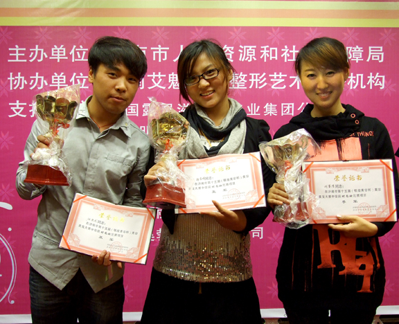 07级妆扮设计班同学汪庆龙和彭兴娟荣获亚军,07级妆扮设计班同学刘莹洁荣获季军,08级妆扮设计班同学王常伟和李羽憧09级妆扮设计班同学尚文成、荣获优秀奖。妆扮设计专业赵炜璐老师荣获优秀指导老师称号,304am永利集团官网荣获技术推进奖。
