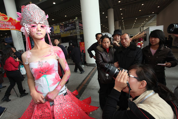 11月7日上午,由永利官网参与主办的“2010影像亚洲•齐鲁国际摄影周暨第三届济南国际摄影双年展”系列活动之——妆扮表演现场抓拍比赛在济南舜耕国际会展中心举行,来自世界各地的摄影师和广大摄影爱好者参加活动。 此项表演由永利官网妆扮设计专业和服装表演专业学生合作推出,妆扮设计专业学生在模特身上描绘出构思独特、五彩缤纷的彩妆,身着华丽服饰,面带美丽妆扮的服装表演专业学生,踩着轻盈的步子,为现场观众奉献了精彩的表演。此前,整个化妆过程也公开展示,到场的摄影家和摄影爱好者们频频按动快门,存留下一个个精彩瞬间。 至此,作为双年展系列活动之一的现场抓拍比赛全部结束,参与活动的摄影师可将作品上传至腾讯图片站“影像亚洲”专区,或登录美国职业摄影师协会官方网站参与比赛。大赛设一、二、三等奖及优秀佳作奖,现场拍摄的大会风采和活动花絮皆可参赛。