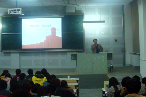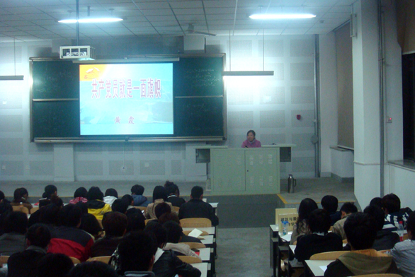 10月25日晚6:00,永利官网2010年第二期入党积极分子党课培训班在长清校区十合堂正式开课。建筑与景观设计学院党总支书记吴焕文、学生处副处长黄霞应邀为198名入党积极分子上了第一堂党课。本次培训由组织部正处级组织员杨雪梅主持。 在党课开始之前,杨雪梅在会上强调了党课学习的主要内容,希望全体入党积极分子珍惜学习培训机会,通过学习加深对党的认识,进一步增加对党的感情,端正入党动机,明确努力方向,以实际行动体现入党积极分子的良好精神风貌和坚定的入党决心。 接下来,建筑与景观设计学院党总支书记吴焕文以《坚定信念,奋发成才》为题,为本期学员上了第一堂党课。吴书记在党课中指出入党积极分子、大学生党员在工作、学习和生活中应发挥先锋模范作用,做到坚定一个信念:共产主义信念;牢记两个使命:振兴中华和刻苦学习;争做三个表率:学习的表率、实践的表率和团结的表率;提高四个能力:自我决策能力、实践操作能力、交往表达能力、组织管理能力。 学生处副处长黄霞的党课以《共产党员就是一面旗帜》为题,从旗帜、理想、模范三个方面诠释了共产党员的先进性。为大家讲解了方志敏、雷锋、钱学森等优秀共产党员的事迹,号召入党积极分子从现在做起,向优秀共产党员学习,向榜样和旗帜看齐,争取早日加入中国共产党。 本次培训以党的基本知识、学习贯彻科学发展观、党性修养、共产党员先锋模范作用的发挥为重点,旨在深化入党积极分子对党的基本知识的理解掌握,教育引导入党积极分子以优秀党员为榜样,以共产党员标准要求自己,自觉加强党性修养,积极向党组织靠拢。