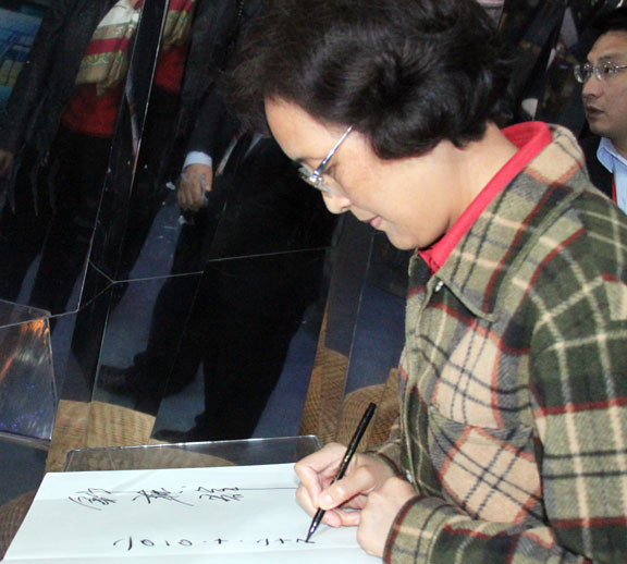 10月25日下午,上海世博会执委会专职副主任、上海世博局党委书记钟燕群参观了世博会山东馆。