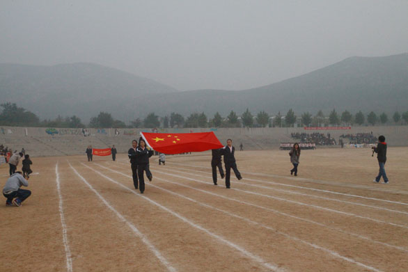 国旗队、彩旗方队、鲜花方队、裁判员、各学院代表队、研究生代表队以及机关代表队先后入场