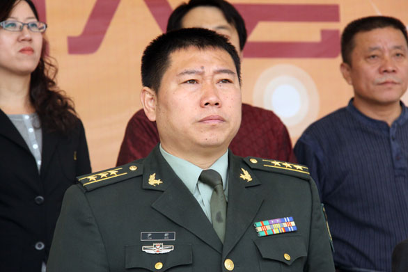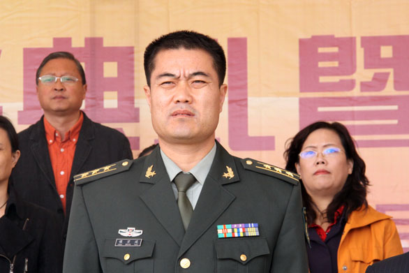 党委书记于茂阳代表学校向济南军区坦克训练基地赠送锦旗