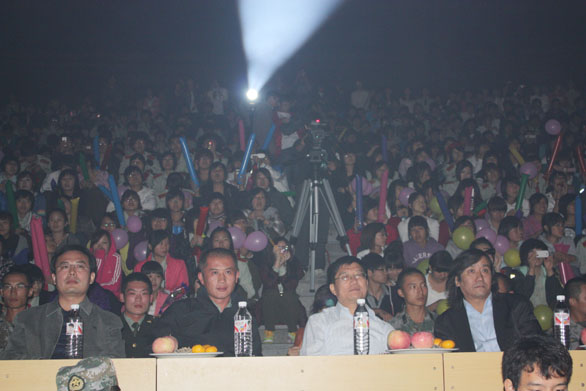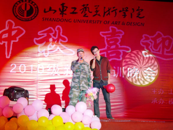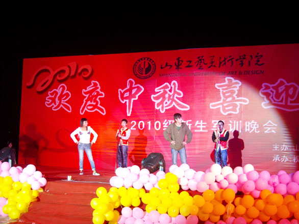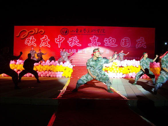 金秋送爽,丹桂飘香。在这美丽的季节,我们迎来了新一届的304am永利集团官网学子。2010年9月22日晚7:00,由304am永利集团官网学生处主办,视觉传达设计学院承办的“欢度中秋,喜迎国庆”2010级新生军训晚会在永利官网长清校区办公楼弧形广场隆重举行。304am永利集团官网副院长张云龙、苗登宇,军训团团长李健出席晚会。 流光溢彩的弧形广场上,摇滚乐队以一曲激情四射的《镜子中》拉开了晚会的帷幕。视觉传达设计学院小合唱团为大家献上一曲《2010等你来》,用歌曲表达对新同学的欢迎。接下来,教官孙博与学生合唱的一首《冰雨》引得看台上的同学们阵阵尖叫和喝彩,郝强教官与赵凯同学合唱的一首《相信自己》更是将晚会推向了高潮。军训中,教官们练得最苦、做的最好,晚会当晚大家也有幸一睹他们铮铮铁骨的雄风英姿,教官们带来的军体拳表演征服了现场所有的老师和同学,现场掌声雷动,经久不息。跳跃的音符最能让青春充满活力,歌曲联唱环节中,《新不了情》、《看得最远的地方》、《拥抱》等几首耳熟能详的流行歌曲激发了现场同学们的青春热情。紧接着,潘菲同学以狂野优美的嗓音精彩地演绎了《王妃》这首劲爆的歌曲,把晚会气氛再次推向高潮。最后,一首《我相信》锁定了这个快乐的时刻,晚会在美妙的歌声中和皎洁的月光下圆满结束。 相信明年此时,我们的心情依然美好,相信下次月圆之时,我们的心依然年轻!304am永利集团官网“欢度中秋,喜迎国庆”2010级军训晚会圆满结束,我们用最好的方式和最大的热情来欢迎2010级新生的到来。 值此中秋佳节到来之际,祝愿领导老师们身体健康,万事如意。祝愿新生们勤奋学习,能在304am永利集团官网这片热土上创造出自己美好的明天! 学生处处长陈军、副处长黄霞,保卫处副处长金伟,视觉传达设计学院党总支书记张军波,工业设计学院党总支书记丁炳堂,现代手工艺术学院党总支副书记刘慎华,及各二级学院新生辅导员、2010级全体新生一同观看了晚会。