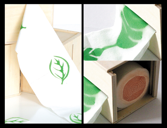 《Leaves概念纸包装》以年轮、树木的颜色变化提醒消费者,取用手纸时注意环保、节约,倡导“创新•简约•低碳”的设计概念。/作者:高增、吴镇