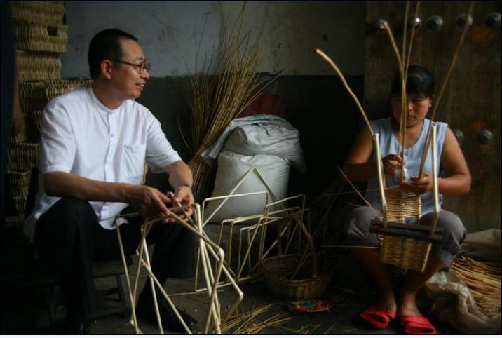 考察山东临沂柳编工艺