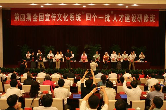 2010年5月24日至29日,中宣部在京举办第四期全国宣传文化系统“四个一批”人才研修班。中共中央政治局委员、中央书记处书记、中宣部部长刘云山同研修班学员座谈并讲话,有关部门负责同志和专家在研修班作专题报告。