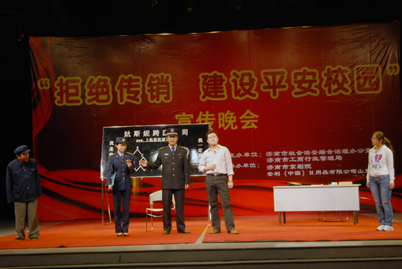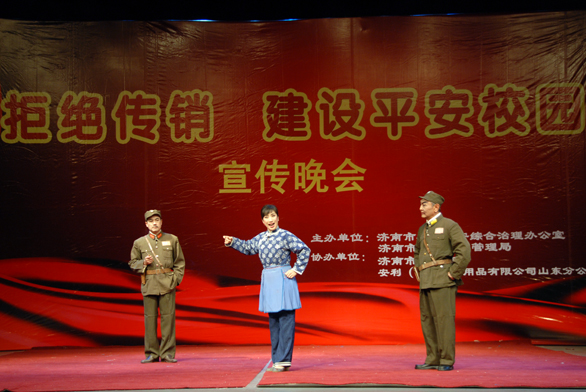 为深入宣传《禁止传销条例》,促进法制走进校园,进一步增强同学们的法治意识,积极预防和制止传销事件的发生,5月27日下午,由济南市社会治安综合治理办公室和济南市工商行政管理局主办,济南市京剧院和安利(中国)日用品有限公司山东分公司协办的“拒绝传销 建设平安校园”主题宣传晚会在永利官网长清校区数字演播大厅拉开帷幕。山东省工商局公平交易局局长高绍辉,山东师范大学副校长王少华,济南市工商局公平交易局局长邱锐,长清区政法委副书记综治办副主任张勇,长清区工商局局长解伟,济南市京剧院院长于鹤咏,安利(中国)日用品有限公司山东分公司主任苑晓梅出席。永利官网副院长刁在祥、张云龙,院长助理、办公室主任王立果出席晚会。 晚会首先在京剧小品《焉能信鼠》诙谐幽默的表演中拉开了帷幕,表演过程中,两个丑角所刻画的贼眉鼠目的传销人员角色不时引起在场同学的阵阵笑声,让同学们在笑声中对传销组织有了更深刻的认识和了解;京剧《杜鹃山》选段——家住安源中,京剧演员用其美妙的嗓音、优雅的气质以及深厚的表演功底征服了观众;一曲《好日子》倾情表达了大家对美好生活的向往和祝愿;经典曲目《红灯记》选段——说家史和《沙家浜》选段——智斗以及《铡美案》让同学们在回味经典的同时更享受了国粹的精华。趣味十足的工商小品《如此传销》再现了大学生受传销组织蛊惑,直至盲从、深陷的场景,揭露了传销活动的黑暗本质,发人深省。在炫目灯光的照射下,京剧连场《绝不能让传销毒瘤逞凶狂》中演员们精彩的表演赢得了观众们阵阵喝彩,将晚会推向了最高潮。晚会在观众们热烈的掌声中圆满结束。 本次晚会旨在揭露传销的黑暗本质,引导学生进一步认清传销的欺诈本质和严重危害,帮助学生增强防范意识和法治意识,提高识别能力,呼吁同学们认清传销并自觉抵制传销,积极构建和谐校园。新颖有趣的节目形式,诙谐幽默的表演,令在场观众无不耳目一新,晚会受到了永利官网学生的广泛欢迎。 永利官网相关部门负责人和部分学生观看了本次晚会。