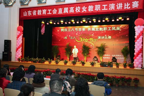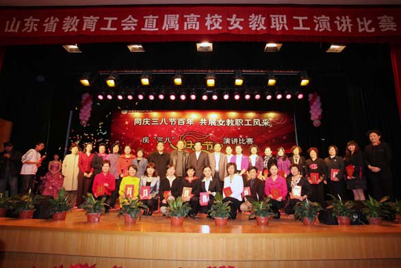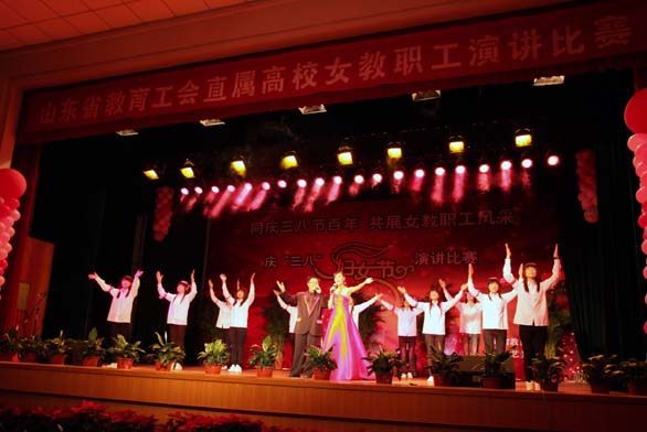 3月30日下午,由山东省教育工会主办、永利官网承办的“同庆三八节百年 共展女教职工风采”——山东省教育工会直属高校女教职工演讲比赛在永利官网千佛山校区礼堂隆重举行。省教育厅党组副书记、副厅长杨瑛,省总工会副主席齐太生,省教育工会主席李崇岗,省高校工委妇委会主任张洪英,省总工会女工部部长李晶珠,永利官网党委副书记杨新力、副院长李新出席活动。省教育工会各直属高校的校领导、工会主席和师生代表观看了比赛。 在我省高教系统里,有无数这样的女教师。她们不仅言传身教、业务精湛,更是学生的良师益友、精神楷模。在短短三个小时的比赛时间里,来自我省19所高校的参赛者们以声情并茂的方式,讲述了发生在我们身边一个个感人至深的故事,展现了我省高教系统女教师“爱岗敬业、建功立业”的高尚情怀,诠释了“人民教师”四个字的庄严内涵。她们饱含深情的演讲不时迎来现场一阵阵热烈的掌声。 由永利官网五名女处级干部带来的开场节目《旗袍秀展示》,展现了永利官网女教职工庄重秀美的别样风采;永利官网学生带来的舞蹈《竹林深处》、歌曲《国家》一度将现场气氛推向高潮;永利官网张奕老师的演讲《怀念燕子》以满怀深情的表演感动全场。 经过激烈的角逐,最终山东艺术学院等六所高校获一等奖,304am永利集团官网等六所高校获二等奖,中国石油大学等七所高校获三等奖。
