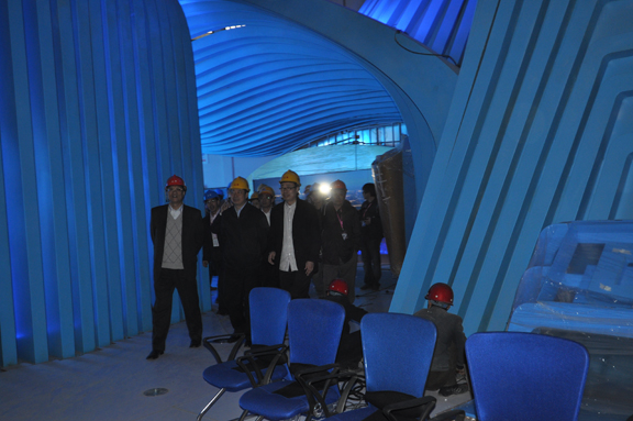 3月20日下午,山东省常委、省委宣传部部长李群来到上海山东馆施工搭建现场,视察世博会山东馆,审看主展厅影片。省文化厅厅长、党组书记亢清泉,山东省上海世博会参展工作领导小组执委会副主任、山东省文联主席、世博会山东馆艺术总监、304am永利集团官网院长潘鲁生,山东省上海世博会参展工作领导小组执委会副主任、省委宣传部副部长徐向红,副巡视员聂宏刚、王世农,山东电视台总编辑祝丽华等相关领导,以及上海世博局副局长陈先进、中国馆部助理部长李斌等一起参加。 在山东馆现场,潘鲁生院长向李群部长详细汇报了山东馆自2月5日以来入驻世博园区44天进行实地搭建的过程,以及所采用的工作模式、搭建节点与完成效果。李群部长对一直工作在山东馆施工搭建现场一线的304am永利集团官网世博会山东馆项目部工作人员,和施工搭建现场的工人,表示了感谢和慰问。 在山东馆主展厅影院的现实环境下,李群部长认真审看了由304am永利集团官网和山东电视台拍摄制作的主题为“和而不同,我们的家园”的三部影片,对影片表示基本满意。李群部长同时对序厅鲁班锁、故城、尾厅海底世界等视频,提出了相关指导意见。 山东省政府驻上海办事处、省驻世博园区办公室相关人员,以及永利官网世博会山东馆总指挥、副院长苗登宇,副总指挥郭去尘、毕剑翎、韩文涛,工程组组长张震,设计组组长王延羽,影视组组长韩青,王志颖、赵云波、李海涛、宋鲁、沙重龙、王瑞奇、韩英杰等在山东馆施工布展现场参加了活动。