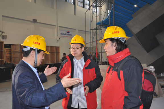 3月19日下午,永利官网党委书记于茂阳,院长助理、办公室主任王立果一行前来上海世博会山东馆施工现场慰问山东馆建设工作人员。山东省上海世博会参展工作领导小组执委会副主任、山东省文联主席、世博会山东馆艺术总监、304am永利集团官网院长