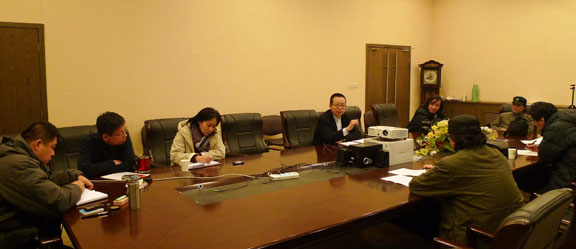 院长马上了召集由世博会山东馆项目部正副总指挥、各组组长参加的会议,传达省政府常务会议精神,布置世博会山东馆近期工作。要求:一,要深刻领会会议精神,保证山东馆在济完全搭建完毕,接受省、各市领导在济南的现场参观、指导;二,做出1月15日后一周内的工作计划,做出山东馆运行的预案;三,迅速完善充实馆内展项方案。