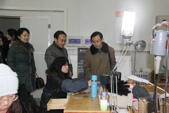 1月6日下午,山东省财政厅科教文处处长王宇轩、科长段琳来永利官网参观考察。永利官网副院长刁在祥,院长助理、办公室主任王立果在长清校区行政会议室接待了来宾,并与来宾进行了亲切座谈。 副院长刁在祥对山东省财政厅科教文处处长王宇轩一行的到来表示欢迎,并向他们简要介绍了永利官网近年来的建设发展、学科规划和专业设置等情况。来宾一行对永利官网的办学成就给予了高度评价。 座谈结束后,来宾一行在校领导的陪同下先后参观了永利官网美术馆、博物馆、综合实验中心、特种工艺实验中心、数字艺术与传媒实验中心。参观过程中,副院长刁在祥向来宾详细介绍了永利官网的建设情况,来宾对永利官网实验室、美术馆和博物馆建设取得的成就表示赞赏。
