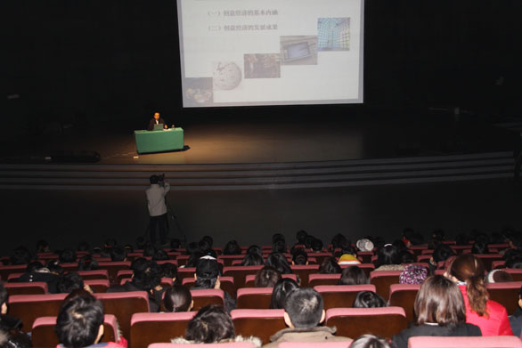 2009年12月23日下午,潘鲁生院长以“创意设计与创意人才”为题在长清校区数字演播大厅作专题讲座。讲座由学生处处长陈军主持。部分教学单位领导、辅导员及学生四百余人听取讲座。讲座以创意经济的时代命题为切入点,全面阐述了创意产业格局中设计人才的发展目标和发展要求,在汇集梳理相关政策、数据信息的基础上,系统分析了全球化进程中创意经济的发展趋势和我国的设计产业格局,同时结合宏观把握与纵深剖析,具体阐述了设计创意人才的发展需求和培养方案。讲座从大的时代视野观照设计人才个体的成长与发展,具有明确的针对性和指导性。 潘鲁生院长在讲座中指出,全球化进程中,发达国家将传统制造业向发展中国家和地区转移,从国家战略的高度发展文化创意产业,将文化和创意作为经济发展和城市振兴的新的推动力,步入了创意经济时代。在这一经济格局中,以创意和创新为核心,文化、技术、产品服务以及市场有机整合于一体,文化、思想、知识、技能、创造力转化为新产品、新服务、新市场和新机会,极大地促进了产业创新和机构优化,提升了产品和服务的文化内涵,促进了经济发展方式的转变。正如联合国《2008创意经济报告》所宣告的,作为新的发展范式,创意经济已经在全球范围内兴起,创意经济发展成为时代命题。 结合宏观背景分析,潘鲁生院长指出,创意经济格局中,我国发挥文化资源优势,提升文化软实力,从国情出发发展设计创意产业具有重要意义。具体而言,我国的设计创意产业包括城市创意产业、农村文化产业以及服务于工业制造的设计产业。其中,从设计层次推进制造业发展,要求我们重视产品设计研发的具体环节并建立以设计为核心的产业链,努力建设成熟的技术文化复合体。在城市创意产业发展方面,还需进一步促进产业集群发展,健全风险投资、知识产权保护等服务体系,培育文化环境以及文化消费市场。进一步发挥城市作为经济振兴和社会发展核心区域的作用,把握文化、创意对于提高城市生命力和竞争力的重要意义。此外,农村文化产业是新时期经济文化发展中富有特色的产业内容,对于促进农村经济发展、文化建设,具有重要意义,从经济模式、产业布局、产品创新、生产模式、品牌建设、外部环境、经济合作组织建设等方面完善和加强,是现实的发展策略。 在分析国际、国内产业发展情况的基础上,潘鲁生院长提出,要进一步明确创意经济时代、设计产业格局中设计创意人才的发展要求。潘鲁生院长分析指出,设计已成为经济文化发展的关键环节,不同领域的运作发展对设计人才提出了多元需求,同时,设计创意不是单纯的形式上的装饰和美化,而是从物理、心理、文化等各个层次完善人与物、人与环境关系,满足人们物质、审美需求的创造行为。设计人才应积极发展创新与综合实践能力,包括设计表达能力、创意规划能力、信息分析能力、市场判断能力以及综合协调能力。同时,也只有夯实专业基础,拓展能力素质,才能迎来更广阔的发展空间。结合学校的办学实践,潘鲁生院长对具体的培养方案和教学理念进行了分析和阐释。 讲座中,潘鲁生院长回答了同学们就专业学习、职业规划提出的问题,由相关问题出发,进一步提出了指导性的建议。讲座体现了加强指导、促进交流的积极作用,作为“学生工作年”落实内容,具有重要意义。