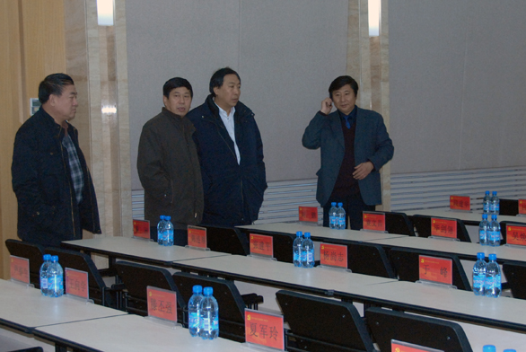 党委书记于茂阳等领导检查第二次党代会会场布置工作