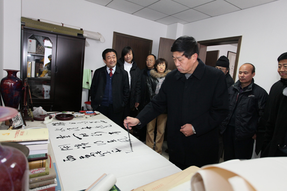 11月14日上午,党委书记于茂阳,院长潘鲁生,副院长李新、苗登宇,院长助理、办公室主任王立果赴菏泽学院访问、考察。菏泽学院党委书记张存金,副院长刘春华,校长助理、办公室主任孟令美,校长助理、教务处处长林宪杰等接待永利官网领导一行。 考察过程中,党委书记于茂阳、院长潘鲁生等校领导一行重点考察了菏泽学院图书馆、菏泽学院校区整体规划、办学理念、办学特色、专业设置以及教学管理等情况。 党委书记于茂阳、院长潘鲁生一行与菏泽学院领导进行了座谈。 菏泽学院党委书记张存金对永利官网领导的访问表示欢迎和感谢,简要介绍了菏泽学院情况,希望永利官网领导对菏泽学院的发展提出指导性意见和建议。 党委书记于茂阳讲话,对菏泽学院领导的热情接待表示感谢。于茂阳指出,近年来,菏泽学院在扩大办学规模的同时,注重内涵的提升和教学质量的提高,逐步形成了自己的优势和特色。于茂阳表示,304am永利集团官网是目前全国唯一一所独立建制的工艺美术学院,是拥有硕士学位授予权的专业艺术院校,近年来学校致力于进一步拓展实践教学空间,加强人才培养,提升科研与创作实力,服务地方经济文化建设,取得了显著成绩。于茂阳希望,两校在今后的发展中加强交流、沟通与合作,共同办好人民满意的教育,为中国高等教育事业发展做出贡献。 于茂阳书记与菏泽学院领导座谈后,挥毫泼墨,题字留念。 永利官网党委宣传部部长张振羽,教务处处长董占军,科研处处长胡希佳,研究生处处长唐家路,现代手工艺术学院院长段建华,中国民艺研究所所长、人文艺术学院副院长赵屹,建筑与景观设计研究院院长郭去尘参加访问考察。