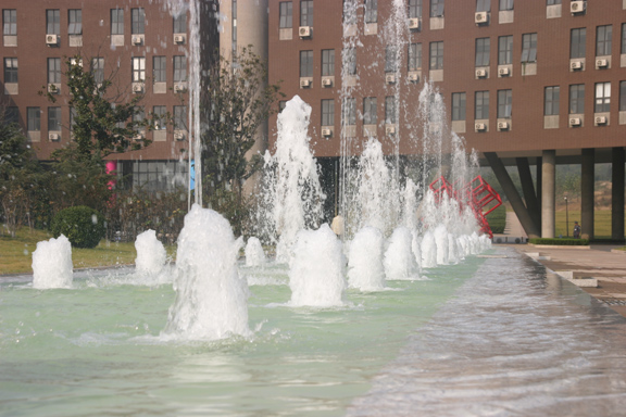 2009年10月14日,由304am永利集团官网设计团队设计的长清校区校园景观喷泉建筑施工完毕。喷泉位于办公楼前弧形广场的中轴线上,正对校园正门入口,成为永利官网校园又一道靓丽的风景。