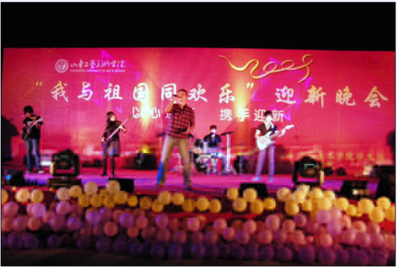 带着憧憬,怀揣梦想,我们迎来了2009级新同学;满载希望,面向彩虹,我们即将迎来新的挑战。为帮助大一新同学尽快适应大学生活,在全国上下共庆祖国60华诞之际,永利官网“2009'我与祖国同欢乐”迎新晚会于2009年9月25日晚成功举办。 9月25日晚7时许,由永利官网学生处主办、工业设计学院承办的 “2009'我与祖国同欢乐”迎新晚会在永利官网长清校区弧形广场隆重举行。党委书记于茂阳,副院长王秀存、张云龙从百忙之中来到了晚会现场,与同学们一起观看了演出。出席本场晚会的嘉宾还有:机关党总支、学生处、保卫处、宣传部等机关部门的负责人以及各院院长、书记和老师们。 晚会以循环乐队演奏的一首动感十足的《young fou you 》拉开帷幕,超动感的歌曲展现了同学们朝气蓬勃、昂扬向上的精神风貌。随着主持人的上场,晚会现场上空成了花的海洋,六十颗礼花璀璨夺目、争艳夜空,在庆祝祖国60年华诞的同时,也为晚会现场增色不少。诗歌朗诵《青春中国》激昂澎湃,讲述了中华人民共和国建国60年走过的艰难历程,中国犹如东方的一条巨龙正在腾飞,用自强不息的精神诠释着青春的意义。小品《山寨版鹿鼎记》凭着演员们精彩的反串表演,博得现场观众热烈掌声。接下来《红旗飘飘》的演唱者是平日里认真严肃的辅导员老师们,铿锵的旋律让在场观众热血沸腾,同学们深切感受到青春中国的活力,将本场晚会的气氛推向了高潮。最后,晚会在舞蹈《好日子》的深情演绎中圆满落下帷幕。 本次晚会包含了舞蹈、小品、话剧和歌曲等各类节目。悠扬婉转的旋律、激情奔放的舞蹈以及幽默风趣的话剧和小品,充分展示出永利官网学生的多才多艺,同时也反映出了永利官网和谐的校园文化氛围。让我们共同祝愿母校的明天更加美好,祝愿我们的祖国更加繁荣富强!