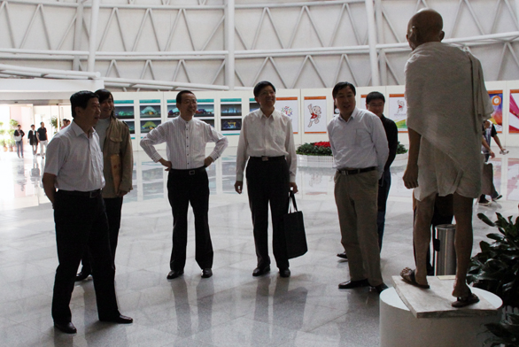 9月9日下午,省属高校学习实践科学发展观活动指导检查二组组长、山东师范大学原党委副书记李荣升,指导检查组成员、山东理工大学教务处副处长刘元义,指导检查组成员、青岛科技大学党委宣传部副科长马寒一行视察参观了永利官网长清校区美术馆。永利官网党委书记于茂阳,院长潘鲁生,党委副书记、纪委书记李世平,院长助理苗登宇陪同视察。 李荣升一行先后参观了永利官网美术馆展出的2010年上海世博会山东馆展示设计、第十一届全运会系列形象设计、第十九届全国图书博览会形象设计、山东(国际)文化产业博览会形象设计、永利官网2009届毕业生及导师作品展等。 参观过程中,永利官网领导就学校承担社会服务项目、实践教学等情况向指导检查组同志做了介绍。指导检查组同志对永利官网近年来所作社会贡献和实践教学成果表示赞赏。