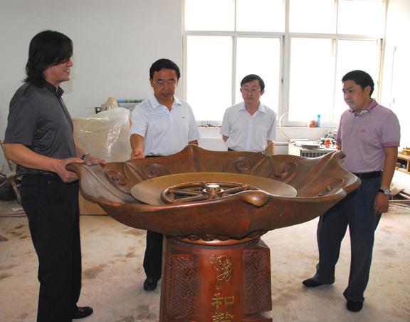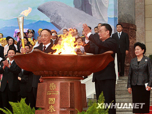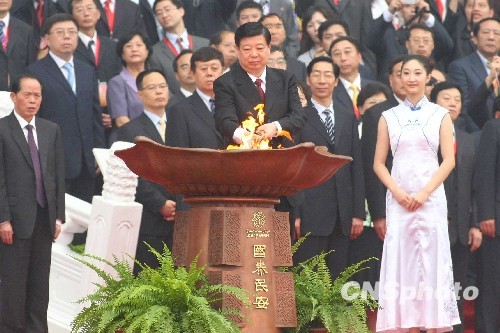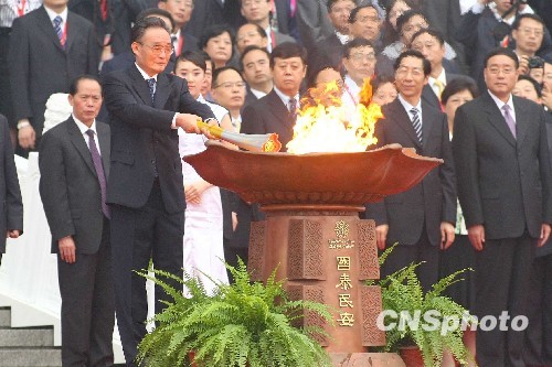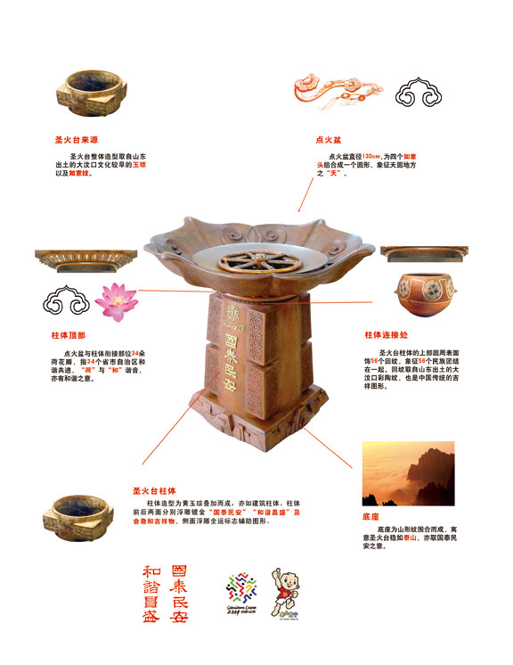 2009年8月16日上午9时整,以“祝福祖国,共享全运”为主题的中华人民共和国第十一届全国运动会火炬传递活动点火起跑仪式在北京人民大会堂东门外广场举行。出席本次点火仪式的国家领导人有:中共中央政治局常委、全国人大常委会委员长吴邦国,中共中央政治局委员、国务委员刘延东,中共中央政治局委员、中共北京市委书记刘淇等。此次点火仪式由国务委员兼国务院秘书长马凯主持。 山东省委书记姜异康将“国泰民安,和谐昌盛”圣火坛点燃。中共中央政治局常委、全国人大常委会委员长吴邦国将主火炬点燃并传递给国家体育总局局长刘鹏,随后,刘鹏将主火炬传递给主火炬手杜丽,杜丽依次点燃了4路火炬手手中的火炬。由此,中华人民共和国第十一届全国运动会火炬传递活动正式开始。 此次全运会火炬传递点火仪式所使用的“国泰民安,和谐昌盛”圣火坛方案,是由304am永利集团官网研究生处处长唐家路教授主创,学校教师张培源、宋处岭、孙勇及硕士研究生单大鹏、王拓共同参与设计完成。圣火坛设计追求安全实用,庄重大气,既包含传统寓意和文化内涵,特别是齐鲁文化特色,又不失简洁和时代气息。实物制作由科研处处长胡希佳教授及其助手和设计人员在枣庄圣德青铜艺术有限公司完成。圣火坛燃火技术由中山华帝燃具股份有限公司设计实施。 圣火坛从设计到制作完成历时一个多月,自2009年6月中旬,永利官网设计团队与其他设计单位同时开始圣火坛的设计创作,设计过程中曾先后提交多套方案,并多次向省政府有关领导和组委会汇报、修改,并不断完善。最后,其中的方案之一“国泰民安、和谐昌盛”圣火坛被确定为中华人民共和国第十一届全运会火炬传递点火仪式点火坛。 圣火坛的设计与制作时间紧迫,要求严格。国家体育总局,省政府有关领导和十一运组委会领导高度重视,特别是点火安全问题,省政府副秘书长、十一运会组委会常务副秘书长司安民,以及全运会组委会群体部的有关领导等多次听取汇报,为圣火坛的设计提出指导性意见,方案确定后又多次亲临现场检查圣火坛的制作及点火技术安全问题。304am永利集团官网院长潘鲁生教授、院长助理苗登宇教授等也多次指导圣火坛的设计并提出了重要的指导意见,同时也为设计与制作工作组织协调,确保了设计与制作任务的顺利完成。