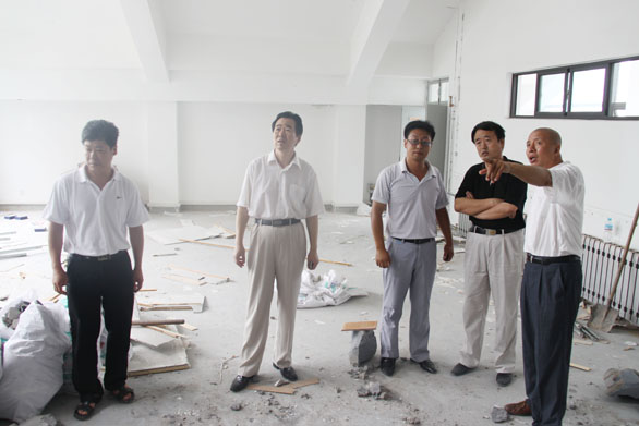 为继续深入学习实践科学发展观,认真落实学习实践科学发展观活动整改方案,落实院长办公会决议责任工作,改善学校教学、办公、生活条件,永利官网后勤管理处积极利用暑期加班加点,完成各项工作任务,23日上午,副院长刁在祥亲临合堂教室、会议室改造施工现场,检查指导工作,并对工作提出了具体要求。 在合堂教室改造施工现场,刁在祥副院长针对施工细节进行了现场考察,并与工作人员进行磋商,确定下一步工作计划。刁在祥指出,改造工程一定要确保施工效果,让使用合堂教室的老师和学生满意。在会议室改造工程施工现场,刁在祥指出,施工必须以安全为第一,确保改造后的质量。 在检查指导中,刁在祥副院长要求后勤管理处利用暑期落实好整改方案要求完成的重点工作,落实好院长办公会决议的责任工作,后勤管理处负责同志表示,一定努力工作,保证按质按量完成任务。 今年暑期,后勤处共有25项工作任务,大多数工作内容计划暑假期间完成,在院领导的正确指导和各部门的大力支持下,后勤处高度重视暑期各项工作开展。为确保每项工作按计划完成,后勤处结合工作实际,反复论证,制定出了切实可行的施工方案,突出重点项目,明确任务与责任,规定完成时限,并决心以此次学习实践活动为契机,在解决问题中,在完成工作中,把好办法、好经验,用制度的形式巩固下来,以体制、机制的创新促进问题的解决,形成推动后勤科学发展长效机制,促进后勤保障能力、服务水平不断提高。 教务处处长董占军,后勤管理处副处长毕建翎,后勤党总支副书记杨尚志,后勤管理处副处长丁鲁,资产管理处处长郭春荣,公共课教学部主任徐思民及有关工作人员陪同。