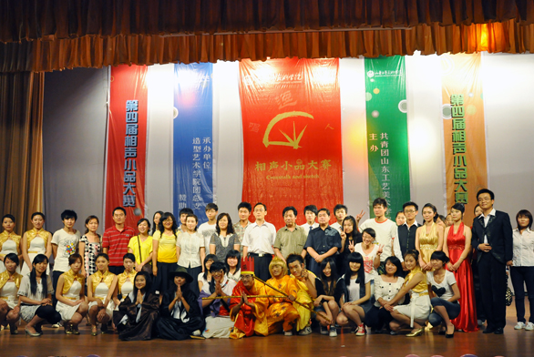 2009年 6月10日14时在学术报告厅,由永利官网团委主办,造型艺术学院团总支承办的“304am永利集团官网第四届相声小品大赛暨颁奖典礼”伴着激情四射的现代舞,在同学们的期待中拉开帷幕。副院长刁在祥、张云龙出席本次大赛。整个学术报告厅座无虚席。 在充满活力的开场舞《冷暴力》过后,主持人宣读了比赛规则,随后便正式进入了激烈的比赛环节。由同学们精心准备的各参赛作品内容丰富多彩,形式多种多样,演员们的表演更是惟妙惟肖、活灵活现。比赛期间,同学们喜不自禁,掌声迭起,笑声不断。小品《我生命中的八个月》真挚感人,《山寨鹿鼎记》形式新颖,《全运pk秀》贴近生活,《新大话西游》装扮独特。由造型艺术学院学生带来的小品《70、80、90》与相声《毕业前后》也毫不逊色,其主题贴近生活,言语幽默风趣,表演生动形象,引来观众笑声不断,掌声连连。在比赛中场期间穿插了歌曲,同学们美妙动听的歌声,再次点燃了全场的激情。 本次相声小品大赛用时两个小时,节目精彩纷呈,表演充满活力,尽显当代大学生多才多艺、积极向上的风采以及出色的表演天赋。经过激烈的角逐, 比赛产生了包括一、二、三等奖、优秀组织单位称号、最佳节目奖在内共九个奖项。优秀组织单位称号由人文学艺术院获得;小品《70、80、90》以及《都是小沈阳惹的祸》、《我是明星》获得了优秀节目奖。小品《我生命中的八个月》围绕奥运之一主题,贴近生活,凭借演员们真挚感人的表演,征服了现场的评委与观众,取得了全场最高分,获得了本次“相声小品大赛”的一等奖;二等奖由表演内容充实活泼,肢体语言生动形象《新大话西游》与《全运pk秀》获得;小品《山寨鹿鼎记》、《新三顾茅庐》、相声《毕业前后》,表演风趣幽默,形式新颖获得了本次比赛的三等奖。颁奖结束后,嘉宾们与全体参赛演员合影留念。 “304am永利集团官网第四届相声小品大赛暨颁奖典礼”的成功举办,透过同学们精彩绝伦的表演,充分展示了永利官网学生多才多艺、青春活力的一面,为同学们更好的展现自我、张扬个性提供了一个良好的机会。它不仅丰富了同学们的校园文化生活,加强了各二级学院之间的交流,而且传承了中华传统文化,彰显了语言的独特魅力,使同学们受益匪浅。 团委书记袁文昌,数字艺术与传媒学院党总支副书记黄美玉,造型艺术学院院长雷家民,党总支书记李龙潭,党总支副书记闫燕,专业教师李友生、孙勇,学生处、团委、各二级学院团总支书记、辅导员、学生会主席作为嘉宾应邀出席了本次大赛。各二级学院学生会文艺部部长担任了本次比赛的评委。