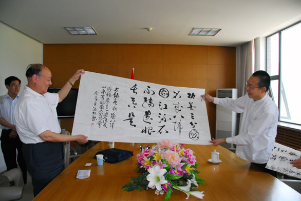 6月11日上午,山东省收藏家协会会长王济红,山东省收藏家协会名誉副会长、莱钢收藏协会会长郭文玉,山东省收藏家协会秘书长、莱钢职工文体中心主任李隆庆一行来到永利官网长清校区。院长潘鲁生,院长助理、办公室主任王立果在党委会议室会见王济红一行。 潘鲁生院长简要介绍了永利官网博物馆建设和使用情况,并畅谈了自己的专业研究领域和收藏经历。他指出,博物馆集研究、传播和展示功能于一身,是文化保护和文化传承的载体。收藏家和文化保护工作者不仅应该保护有形的物质文化,更应该保护非物质文化遗产。收藏家有责任传播收藏意识,带动国民将文化保存和传承下去。 山东省收藏家协会会长王济红介绍了省收藏家协会的发展历程和工作职能。与会人员就文化保护和收藏领域相关问题进行了交流。 会见结束后,王济红一行参观了永利官网美术馆和博物馆。 机关党总支书记刘启乐陪同会见和参观。