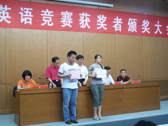 接下来,张琰副主任宣读了关于对2008、2009年全国大学生英语竞赛获奖者表彰的决定及获奖人员名单,到场领导为获奖学生及教师颁发了证书。